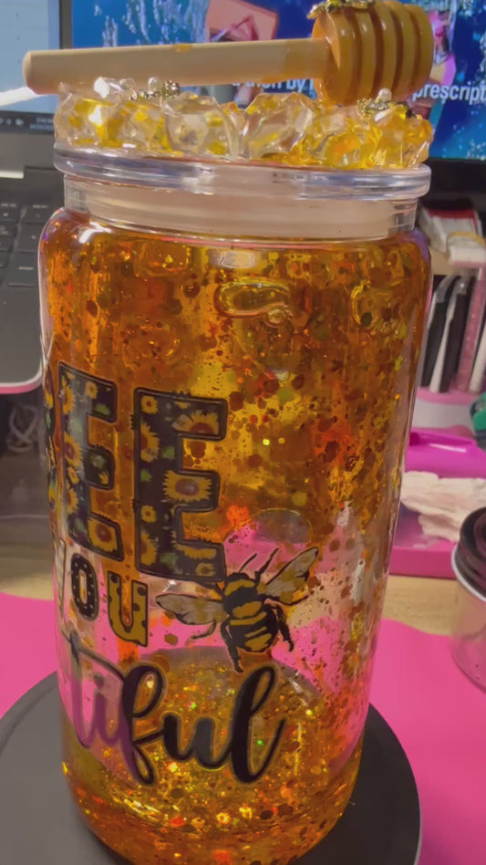 BEE-you-tiful 16 oz glass snow globe with handle