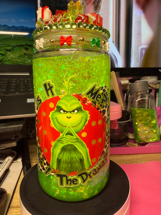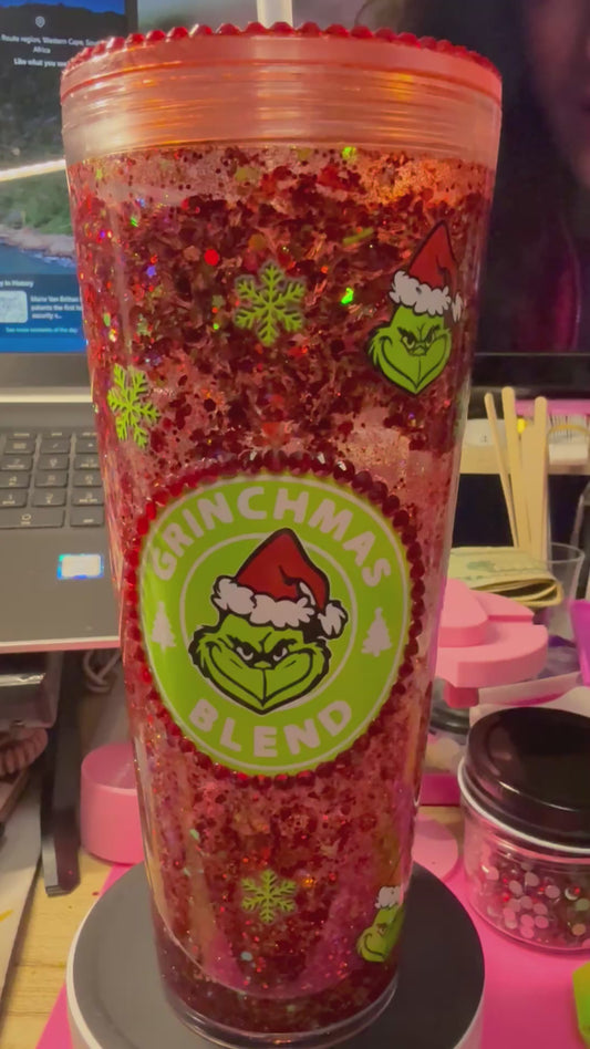 Grinchy Bubu 16 oz acrylic snow globe tumbler